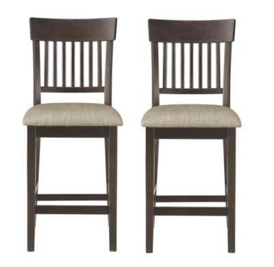 Customer Reviews Lazzara Home Carlow 42 5 In Dark Brown Full Back Wood Frame Bar Stool With Slat Back Fabric Seat Set Of 2 Bed Bath Beyond